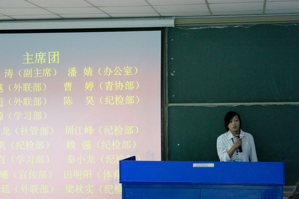 首先,张助理对团委学生会一年工作做了总结,对本届学生工作给予了认可和感谢,并提出了新的要求,希望学生会工作更信息化、数字化,更具有创新意识。接着,换届竞选的各个部门(艺术分院主席团、办公室、组织部,学习部,宣传部,纪检部,社管部,文艺部,体育部,外联部及青年志愿者协会)的学生也上台进行了竞选演说,演说务实、精彩。本次换届竞选演讲,对竞选者而言是一种挑战,对听众而言是一种享受。最后,08级的学生会学长学姐们自由表达了自己的思想,给现场学生简述了自己宝贵的经验。