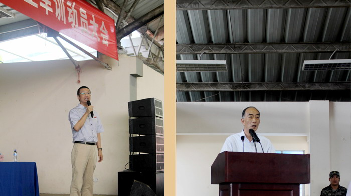 新生动员大会在高昂的国歌声中开始了,学院院长陆丹等学校领导人发言,主要向同学们分析了现代的社会形势并为同学们灌输了更新更成熟的人生观价值观及为人处事观。三亚武装部领导也作发言,向同学介绍了整个军训过程及未来新生将可能遇到的各种问题,并鼓励学生军训过程中坚持不抛弃、不放弃。