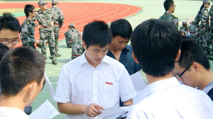 操场上11级得新生认真的听着教官的指导,仔细看示范,从他们的眼神中看到了坚毅,休息时嘹亮的军歌点燃了激情,看到他们甜美的笑容。