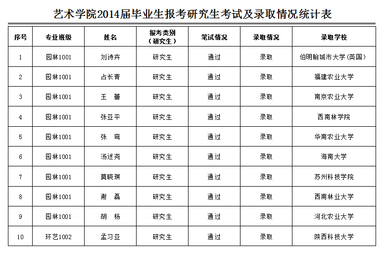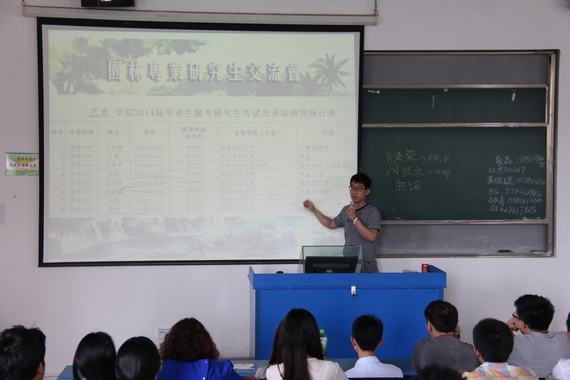 2014年5月7日下午3:30,艺术学院的老师和同学们,在书德楼216教室召开考研经验交流会。今年,艺术学院共考取10名研究生,其中园林专业9名,环境设计1名,十名考取的研究生中,有一名考取国外研究生。