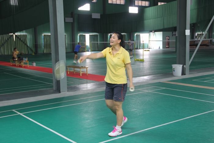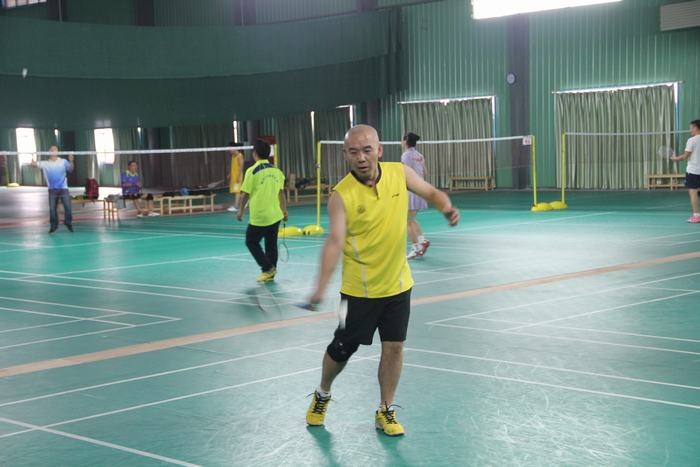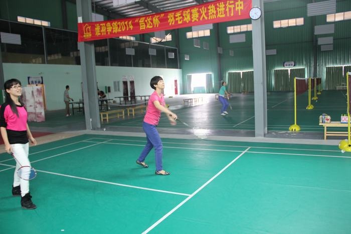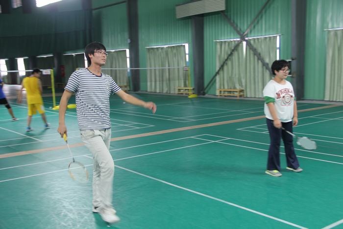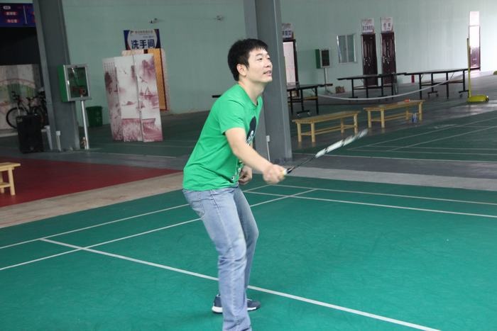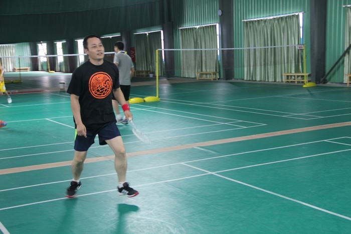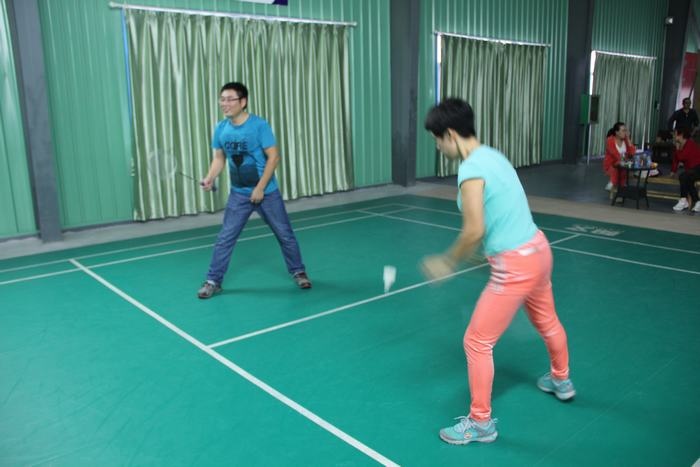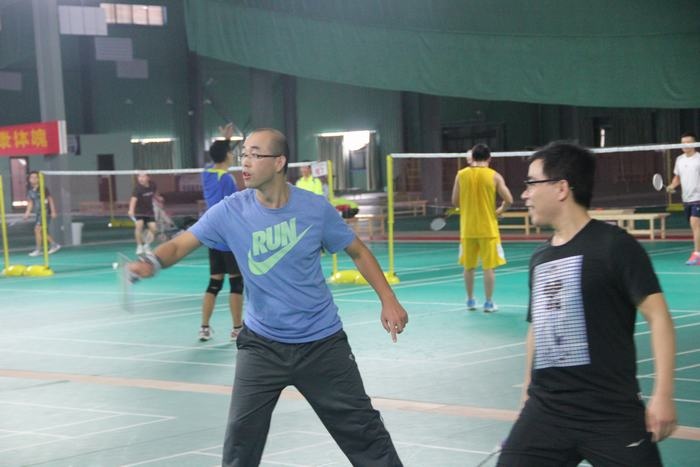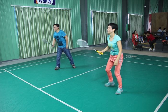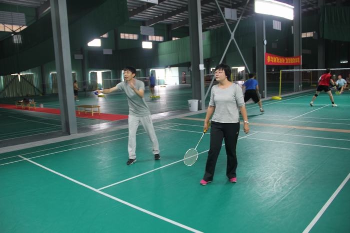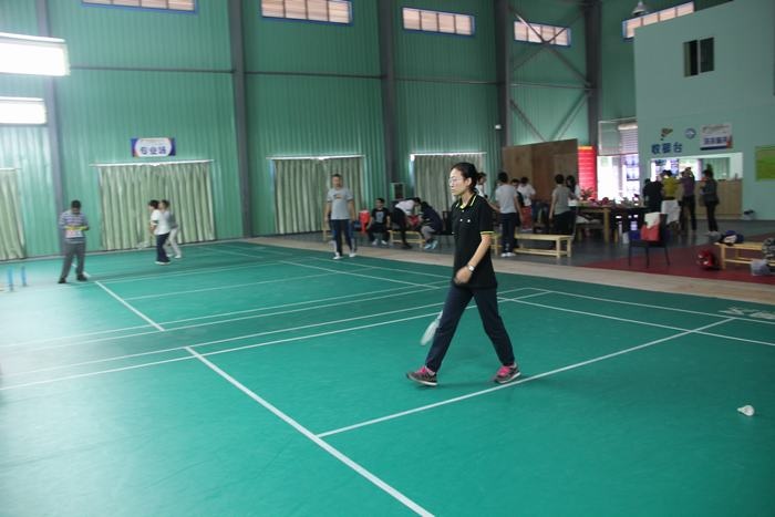 下午两点不到,教师们已经在球馆集中,有的拿着球拍已经开始热身了,有的在一旁的桌子上打起了乒乓球,比赛于下午2点半正式开始,只听一声哨响,四个场地同时进行,比赛有男单、女单、男双、女双、男女混双五中类型,采用团队作战方式,以团队的整体胜利为胜,进行轮番淘汰,最后决出前三名。