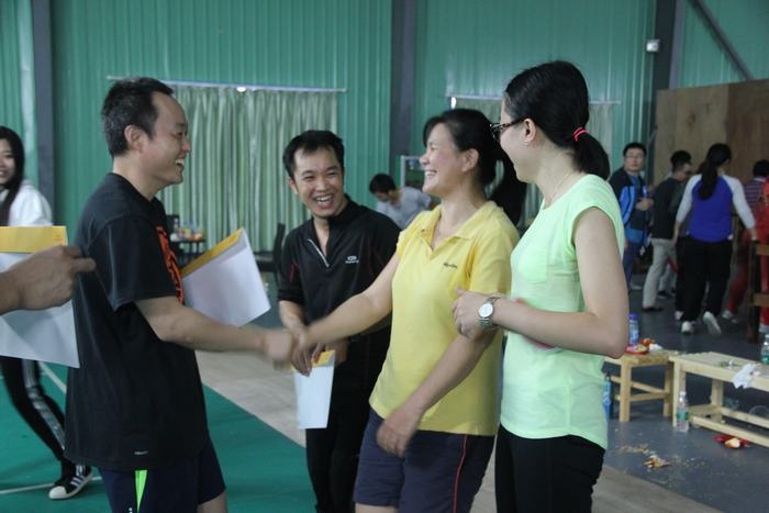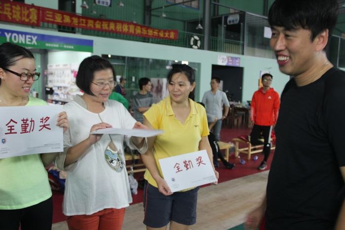 羽毛球赛从下午2点半开始一直进行到5点半,几乎每一个人都上场参加了比赛,最后,行政代表队获得了此次羽毛球赛的冠军,环境设计代表队荣获亚军,雕塑代表队获得季军。