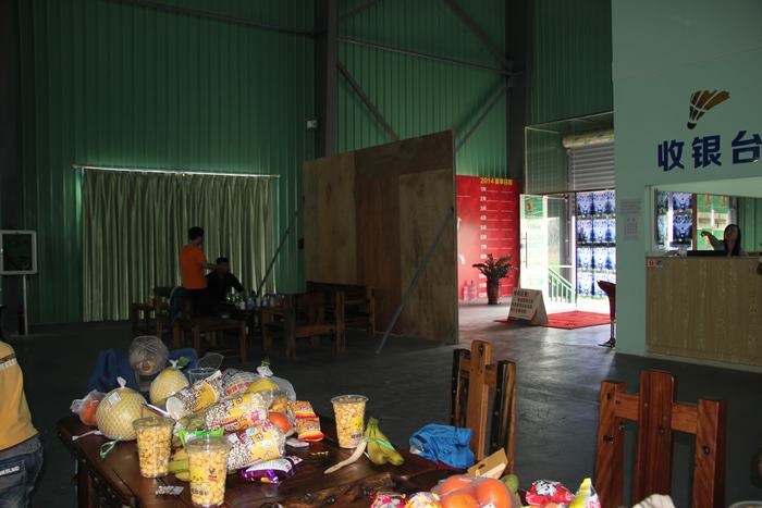 哇!现场还准备了各种各样的水果、零食、饮料,还有爆米花。打球累了的,可以在大桌子旁边吃边休息。