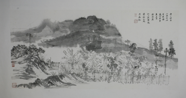 在三亚郊区的三罗村稻田里画写生,偶尔看到的一个小池塘,一两米见方的小池塘里两三只小鸭子不厌其烦的游来游去,特好玩。野草、红刺露兜、新篁、芭蕉、篱笆,疏疏散散,便有画意。用水墨画这些,真的是再合适不过了。