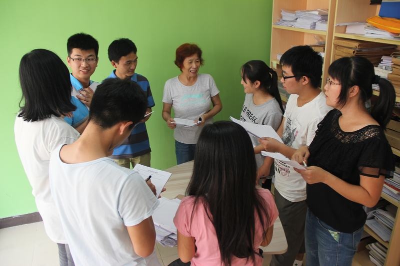 韩冰老师与学生共同探讨暑期社会实践调研报告