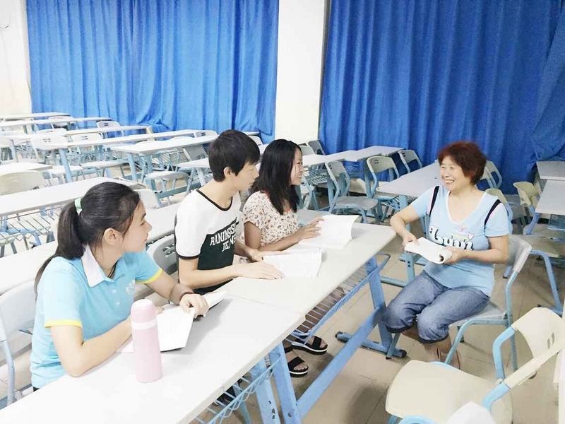 韩冰老师在课后与学生亲切交谈