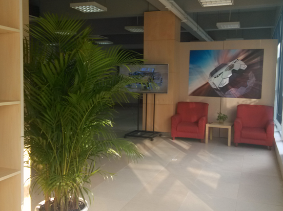 汽车创新实验室位于实验楼一层,大大的落地窗将室外的阳光毫无保留的泼洒进来,让我们的实验室明亮而开阔,简洁的红色单人皮沙发,窗明净几,清新的小绿植,在学习劳累之余品茶、聊天抑或是发呆,是多么惬意的事情。