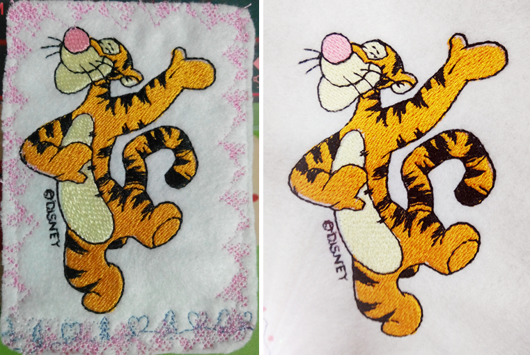 我怀着激动地心情认真的听老师的讲解,在制作作品的过程中机械手臂很是调皮,断了线,跑了针,破了布……但是在老师的耐心帮助下终于有作品问世了。以下是我的作品: