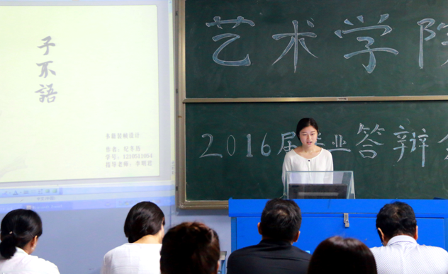 2016年四月二十三日星期六上午,在三亚学院北区北一教学楼和实验楼,艺术学院大四的学生分别在这里举行了作品展示和答辩交流会。
