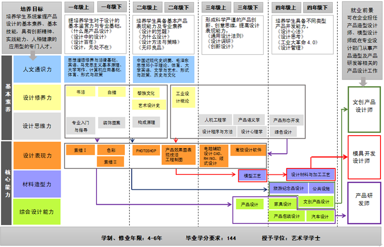 产品设计专业强化人才培养方案的应用型特色,整合教学资源与经验,结合三亚社会经济发展需求,打造专业与学科特色。确立了“旅游产品开发研究”的学科研究方向。通过推行教学各项工作的标准化、规范化、精细化、职业化、系统化等措施,持续提升人才培养质量。同时,根据行业的发展趋势,开始在课程体系上借鉴课程地图的方式,以可视化的形式,为学生指明个人发展方向,并在方案实施过程中,能够自我完善、修正。