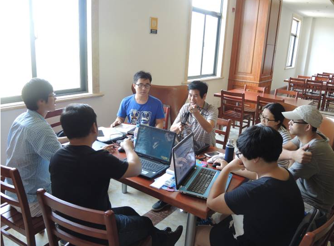 李明君与青年教师一起研论