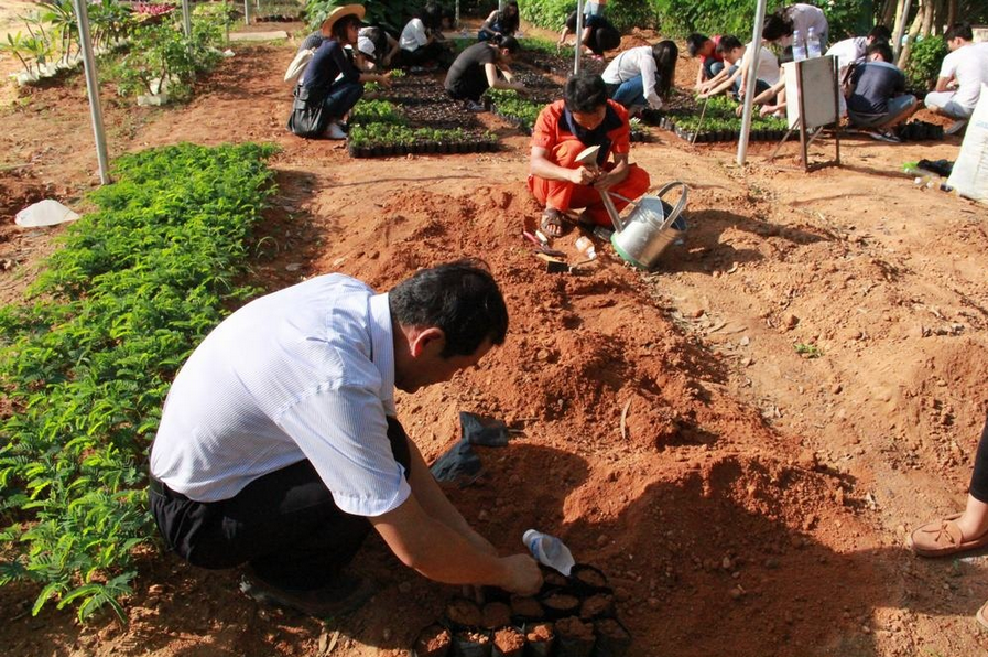 三亚的夏天骄阳似火,中午时分地面气温热得象蒸笼一样,这时候做农活的当地人都习惯在树荫下喝茶、聊天、午休。然而,当你走进三亚学院苗圃地时,你会看到烈日炎炎之下一个年过半百、汗水湿透衣衫的人正在对黄花梨苗木进行管护作业,他就是本文所要介绍的人物——三亚学院风景园林专业李向林教授。