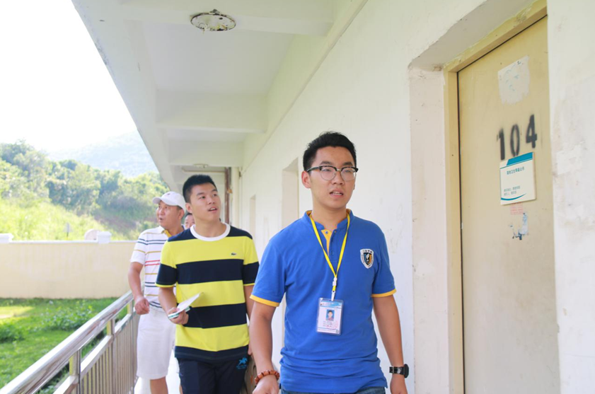 学长提着重重的行李,引领新生及家长找到自己的宿舍