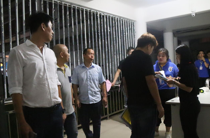 党总支副书记张鑫老师(左一),副院长单冰茸老师(左三),院长助理杨丹老师(左二)带领辅导员及学生干部走访学生宿舍