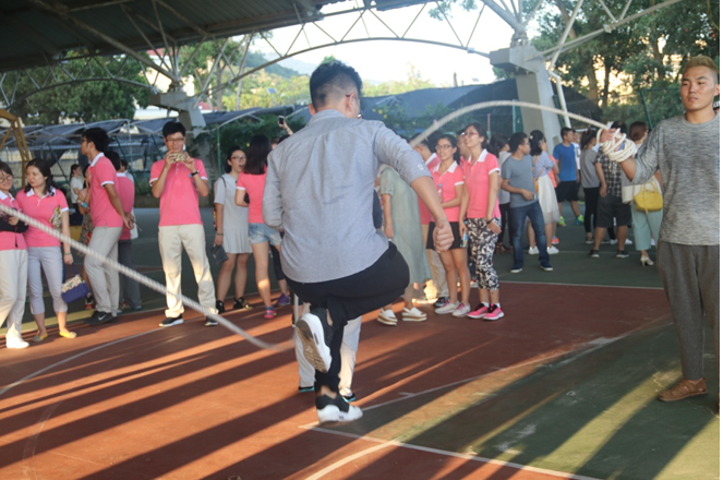 为了丰富全校教职工的课余文化生活,培养团结互助的工作精神,增强集体凝聚力,2016年10月26日 17:00,三亚学院16学年教职工跳长绳比赛在风雨球场正式举行。