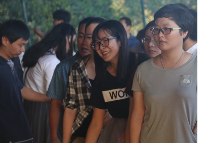 跳长绳是个集体项目,每支参赛队伍以所属学院为单位,在规定时间内,完成次数最多者为胜。艺术学院也派出了一只教职工队伍,党总支部副书记张鑫老师,团委书记陆体锋老师也到场为队员们加油鼓气。比赛还未开始,队员们早已情绪高涨,在空闲的场地专心投入练习。