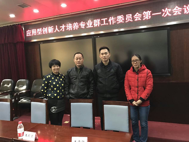 我校参会代表合影,左起艺术学院环境设计专业主任陈琳、艺术学院院长陈博、教务处副处长肖灿、工程管理专业主任蒋必凤