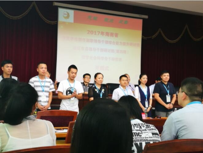2017年6月5日—6月7日在海南省委党校进行了《学习贯彻海南省第七次党代会精神》、《学习贯彻全国和海南省高校思政工作会议精神专题报告》、《社科研究与论文撰写》、《信仰的力量—中国共产党从苦难走向辉煌的内动力》、《创新思想理论,加快构建中国特设哲学社会科学—学习习近平书记在哲学社会科学工作座谈会上的讲话》等理论知识的学习。班级组织了微论坛座谈会议,我院王鹏老师作为学员代表发言,谈了如何更好的与90后大学生沟通、如何加强学风建设等相关问题。