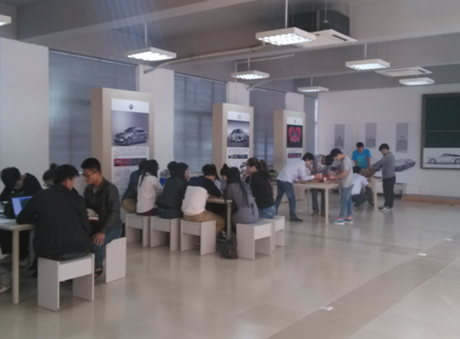 由吉利集团作为有力支撑,学生会有机会和著名的汽车设计大师进行交流,并组织学生赴汽车企业或设计公司进行实习,下图为学生在汽车设计企业学习和吉利汽车设计总监Guy Burgoyne以及沃尔沃设计总监彼得·霍布与学生交流,给学生讲授汽车设计领域的相关前沿知识。通过这一平台的搭建是学生可以更好的明确学习目标和提高学习效率。同时学生的就业渠道也不断拓宽。