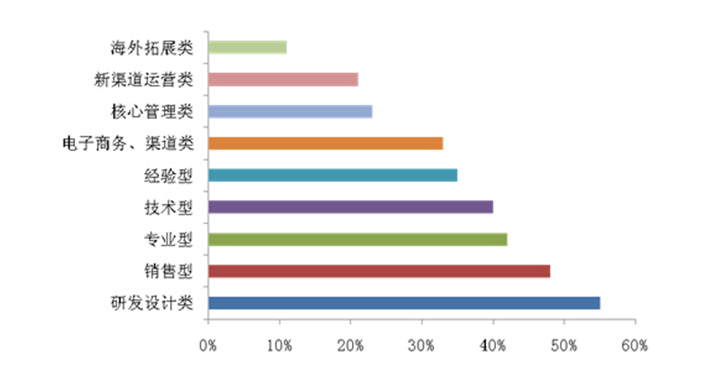 据CFW平台监测数据及人力资源机构调研统计,当前行业从业人员约1800万,而作为劳动密集型产业,除却流动性较高的技术一线及终端一线人员,员工的平均离职率也高达15.8%,人才缺口一直存在。未来,伴随人口红利的逐渐消退,市场竞争的愈加激烈化,行业战略转移的持续推进,整个行业仍普遍存在求贤若渴的现象,预计缺口将达400万(数据来源:中国服装人才官方网站,2015-2016中国服装行业人才招聘与求职分析)。