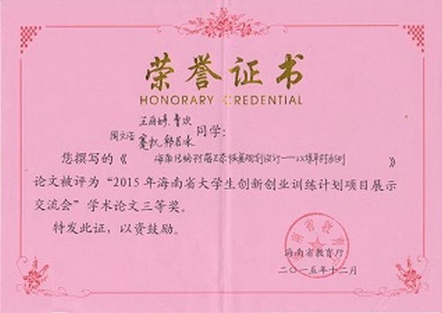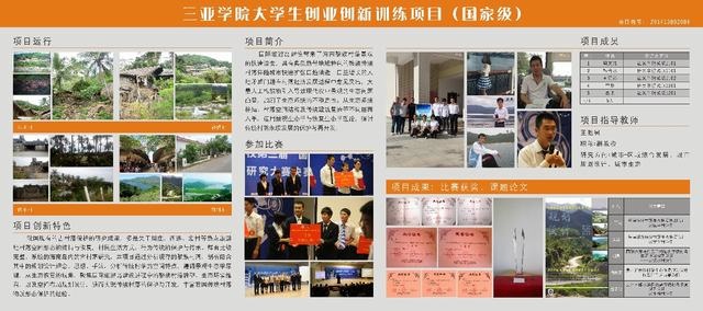 城乡规划专业学生曾两次参加创新创业训练计划,设计领域为传统村落和海绵社区。这些项目主要是每年热度比较高的社会问题或热点论题进行选取,其中2015年度大学生创新创业项目之《三亚市保平村生态恢复规划与设计》获得2015年海南省大学生创新创业训练计划项目展示交流会学术论文三等奖。