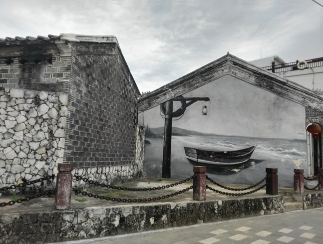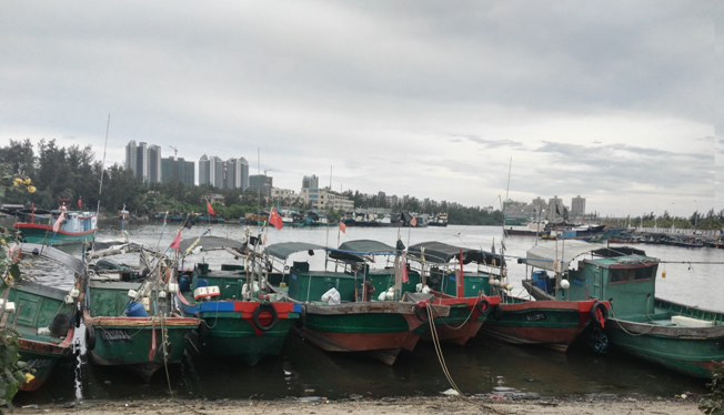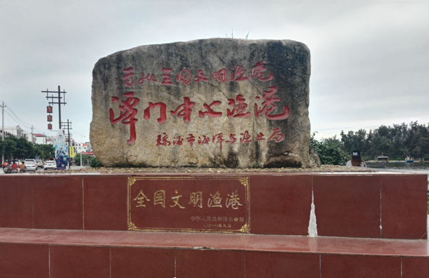 最后,我们在调研之余,在潭门镇逛了逛,发现这里的人们几乎是靠打鱼为生的,在港湾处有很多打渔用的船只,大大小小有序的停靠在港湾里。在镇上几乎每个商铺都有船舵的符号,符号不大,但很显眼。