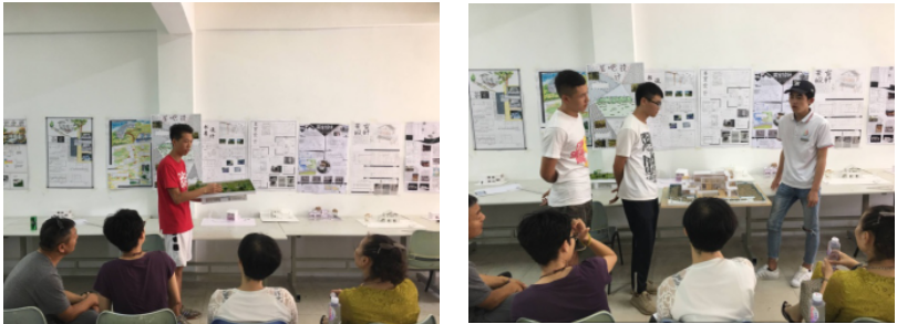 待每组同学代表讲解完后,七位老师都作出相应的评价,提出作品一些不足之处且加以补充,让同学们都获得相应的益处与感悟。当五组同学代表都讲完后,有些同学主动地拿着自己的茶室模型上前讲解,希望得到老师们的点评。