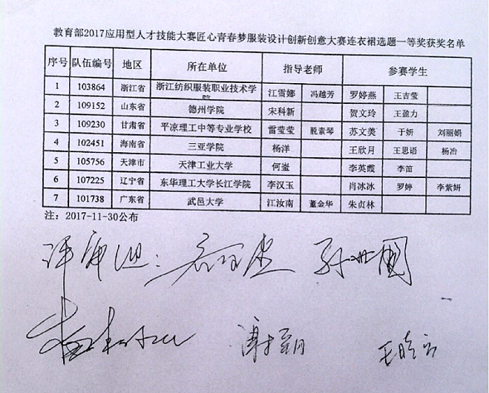 2017年11月30日,由教育部学校规划建设发展中心主办,教育部校企合作委员会承办,天津胜美服饰有限公司支持的“匠心•青春梦”连衣裙设计创新创意大赛总决赛评审会于天津信达大厦38楼胜美服饰有限公司举行。我校艺术学院“三人行”设计团队在决赛中表现优异,参赛作品《忆江南》在41组决赛作品中获得一等奖的好成绩。