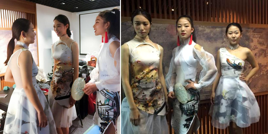 由我院艺术学院服饰1501班的学生王欣月、王思语、杨冶三位同学组建的“三人行”团队,在专业杨洋老师的带领下,凭借独特的的设计理念及制作优良的实物作品,在动态展示和静态评审中都获得了现场专家的青睐和好评,最终获得全场一等奖的好成绩。此次比赛,每一位参与设计的学生,从中获益匪浅,特别是对设计作品的设计实现环节有了更深刻的理解,一组好的设计作品,不仅仅是停留在纸上的设计稿,还必须通过面料结构和工艺等设计和技术手法的应用来实现最终的实物作品,拥有实战的应用型综合技能,成为真正的应用型人才。