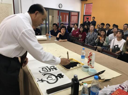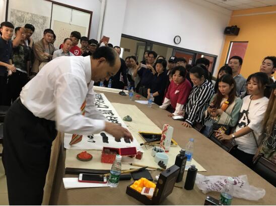 尚德林老师从岩画讲到象形图再到象形字,分析了中外岩画的不同,中国绘画的特点,并分享了他最近几年去各个地方考察的经历和一些有趣的事情。尚德林老师凭着自己在书法篆刻上面的经验和丰富的阅历,给学生讲解及分析许多岩画和文字的演变,并现场书写演示,同时希望设计专业的同学们能够把传统文化运用到自己的设计创作中,发扬我们的传统文化。此次讲座生动有趣,同学们均感到受益匪浅。最后,尚老师为艺术学院题字留念,和师生愉快合影。