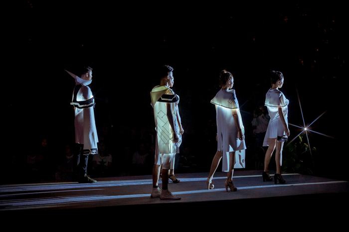 《上篇•南方之南》以海南本土和中国传统民俗元素作为创意主题,用现代设计手法诠释经典文化元素;《中篇•风从海上》以海洋文化作为主要创意主题,鼓励学生们走近海洋、关注海洋,将海洋文化与服装设计结合起来,设计出具有海洋风情的时尚服饰;《下篇•千年丝路》以海外民族民俗元素作为主要创意主题,力求呈现出古代丝路之路丰富与多元的艺术魅力。