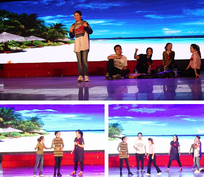俗话说“台上一分钟,台下十年功”。老师们在舞台上精彩的表现离不开平日里辛苦的练习和认真的彩排。因为演员来自不同的专业不同的岗位,所以想一下子把六个人全凑齐真不是一件容易的事,大家克服自身的困难,充分利用课余的每一点时间,仔细揣摩人物的性格特点和内心世界,反反复复推敲剧本,一遍一遍的走位训练,特别是田希老师作为整个舞台剧的总导演,组织老师排练,指导老师的语言、表情及走位,每一句台词、每一个表情、每一个动作、每一次排位都精益求精、一丝不苟,要求做到最好。