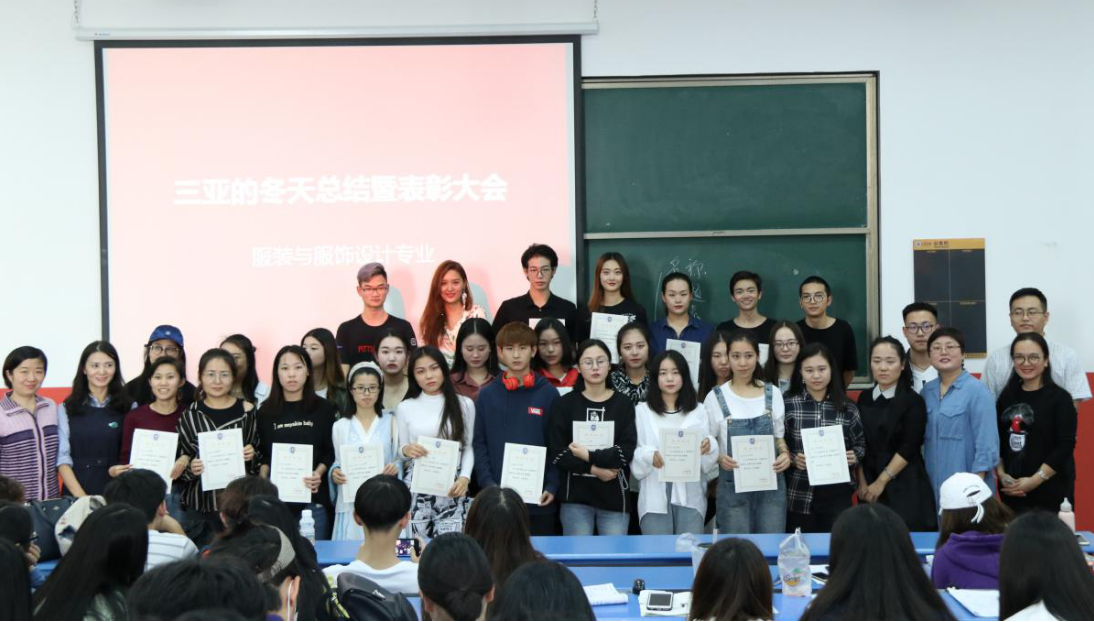 1月15日,艺术学院服装教研室相关老师及服装专业15、16、17三个年级的同学们齐聚书德楼417教室,召开第九届“三亚的冬天”总结暨表彰大会,艺术学院分团委书记孟丽娟、思想导师田希、马新源老师全程出席并为获奖选手颁奖。