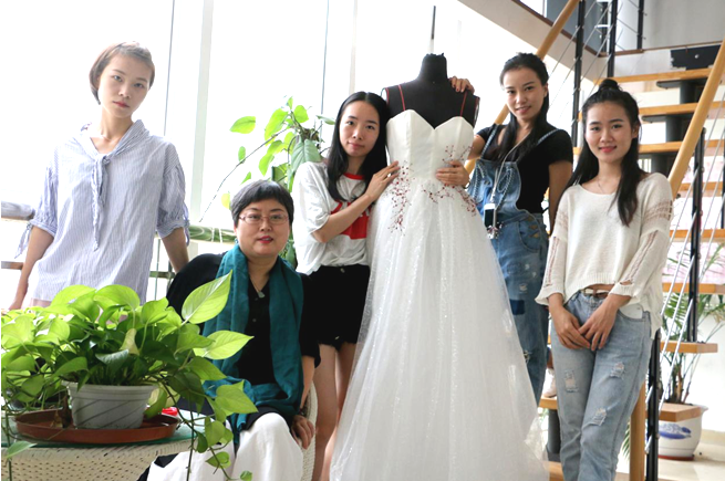 服装专业2016年国家级创新创业项目组团队成员拍摄于服装专业实验室