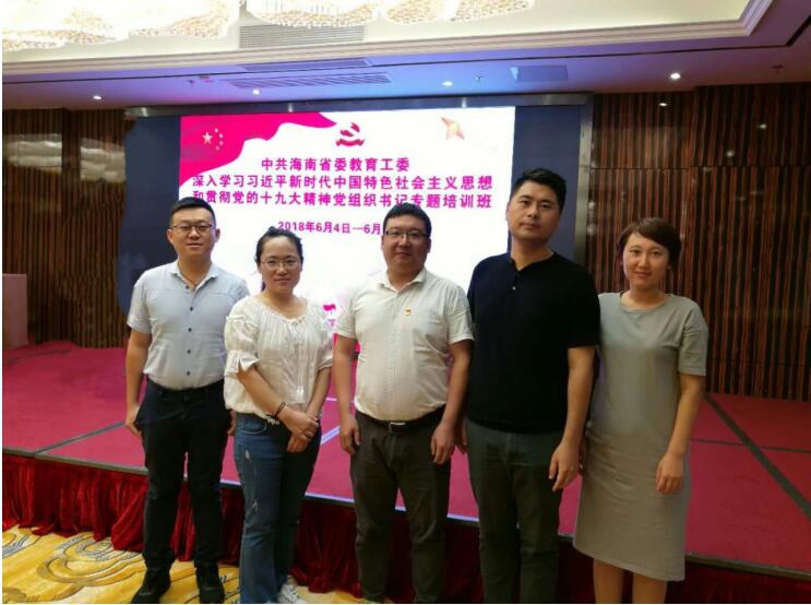 2018年6月4日,海南省委教育工委深入学习习近平新时代中国特色社会主义思想和贯彻党的十九大精神党组织书记专题培训班(第一期)在澄迈老城开发区正式开班。中共海南省委教育工委委员、教育厅党组成员、副厅长邢孔政出席开班仪式并讲话。开班仪式由省委教育工委办公室主任韩忠泽主持。我院学生支部书记孟丽娟受学校委派参加培训。