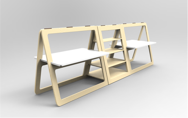这款办公家具可拆卸折叠,节约办公空间,可根据人数的不同选择相应数量的办公桌和置物架,其余办公桌和置物架可折叠堆放在仓库。其设计简洁,不但易于拼装组合,也不怕因路途遥远而难以运输。此产品在实用性和成本竞争上有很大的优势,这款办公家具用的是全木质的,采用激光切割技术,节省制作时间和成本,当消费者需要的时候订货现做也很快,不会出现浪费和货物堆积的情况。