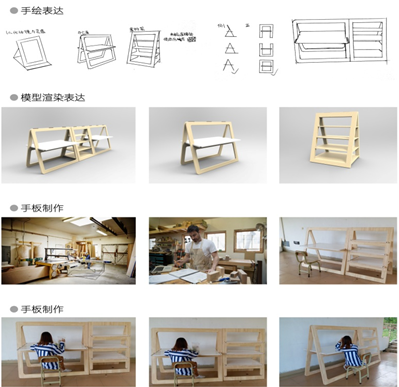 在第一阶段让我认识到与人交流的重要性;第二阶段就是各种头脑风暴的过程,在这一阶段停留的时间最长,也和老师沟通了好几次,好在老师对我耐心指导,在接到老师说我的方案通过的那一刻,觉得整个人身心愉悦;第三阶段考验的是我们的建模能力,好在我做的拼装组合办公家具不是太复杂,并没有遇到太大的问题;第四阶段需要了解各种加工工艺以便更好的设计出符合大众需求的办公家具,需要考虑成本、外观等各各方面,最后就可以找工厂生产了。