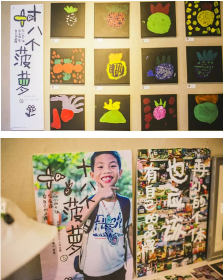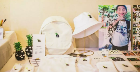 孩子们画出理想的大凤梨,奇妙的想象力令人惊叹。其中一个孩子把凤梨涂成黑色,他告诉大家他画的是黑(xi)凤 (huan)梨(ni)。战果累累的二老板把“黑凤梨”带回家,做成logo,应用到一系列文创用品,完成了毕业设计。