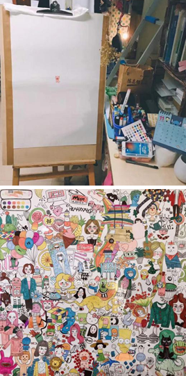 她的作品通常的没有草图,总想到哪儿画到哪儿,刚开始只是画着玩,但慢慢的发现这些小东西其实可以延伸到更多有意义事情上去。