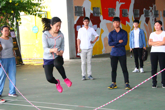 在教师繁忙工作之余,于2018年11月28日下午14:00在风雨球场举行教职工跳绳比赛。