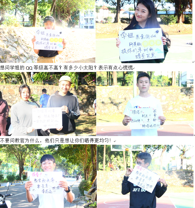 路途的风景怎么呢?拉练快乐吗?在学校训练的小可爱仿佛很快乐哦!学长学姐们又来“慰问”啦!