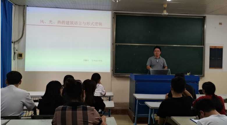 3月21日下午4时,艺术设计学院吴耀华博士在1中教学楼做了题为《风、光、热的建筑语言与形式逻辑》的学术讲座,来自环境设计、风景园林、城乡规划专业的师生听取了本次学术讲座。