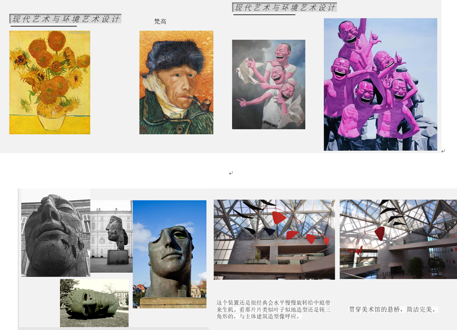 徐老师为同学们展示了现代艺术代表人物作品如:马提斯、康定斯基、梵高、高更、孟克的艺术作品,特别对西方现代建筑及代表人物和公共艺术着重进行了介绍。通过人物和作品的讲解展示让同学们了解西方现代艺术对环境艺术设计的影响,同时对建国后特别是文革时期和80年代后期到现在中国艺术思潮的发生、发展脉络。在讲座中徐老师大量的展示收集的作品图片,力求通过图片及讲解用最简洁的方式让同学们能将现代艺术和环境设计的关系有较全面的了解。