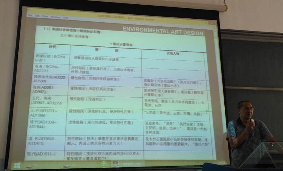 5月20号下午,吴晓淇教授在书德楼315教授为16级环规系学生作了一场“读中国园”的讲座,讲座由院长助理陈琳副教授主持,环规系教师到场聆听了讲座。