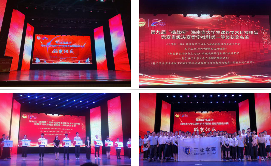 第九届“挑战杯”海南省大学生课外学术科技作品竞赛终审决赛于5月31日在海南大学举办。经过激烈角逐,我校在此次比赛中成绩优异,其中我院哲学社会科学类参赛作品《基于学生需求视域下的新时代海南高校辅导员思想政治教育工作能力提升研究》荣获本次大赛的一等奖。海南省科学技术协会副主席郑红给与颁奖。