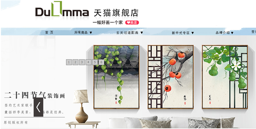 目前我们从事的装饰画市场的现状就是装饰画款式千篇一律、大同小异、很多商家卖出去的款式都是来自于同一个图库、我们投资了天猫商城之后,就大量的开发自己的原创产品画面,申请著作权已有50多款,也陆续签约了一些艺术插画师,走原创路线。与先有市场上的装饰画 画面做到差异化。