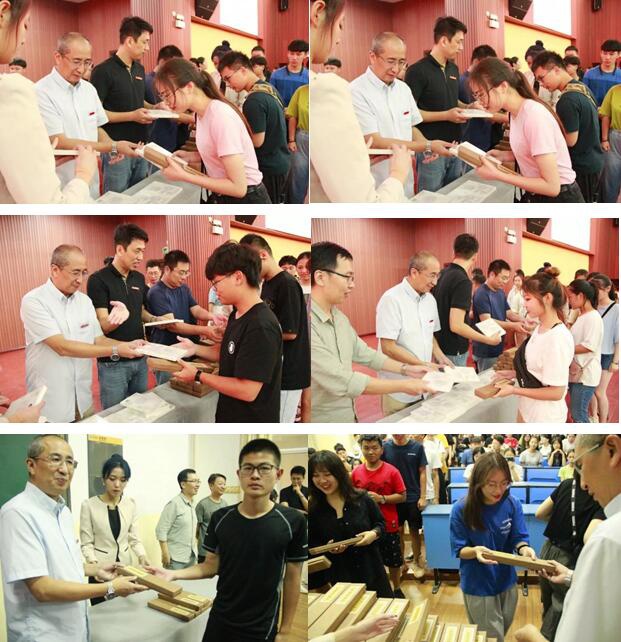 铛铛铛!!!这里有学院为大家准备了毛笔和书,由吴晓淇院长亲自为大家颁发的呢。