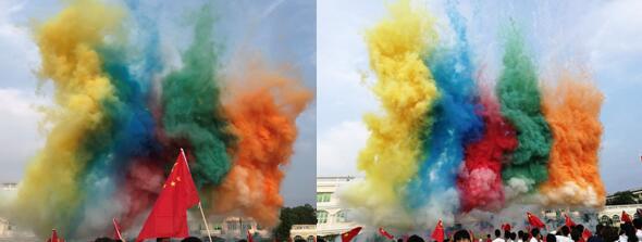 铛铛铛,学校还为同学们准备了2个彩蛋哦,天空中无人机拍下了随时随地同学们可爱的模样,还有在天空中飘起彩色烟雾弹,小伙伴们有没有感到惊喜呢?