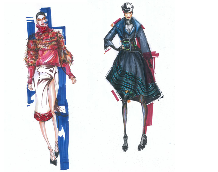 《服装效果图》是一门理论与实践相结合的专业基础课,是服装与服饰设计专业学生的必修课。本门课程开设在大一春学期,共45学时,通过本课程的学习,使学生能较熟练地掌握服装人体的比例、服装与人体之间的表现方式及服装效果图的各种表现技巧,以便更好地表达设计意图。