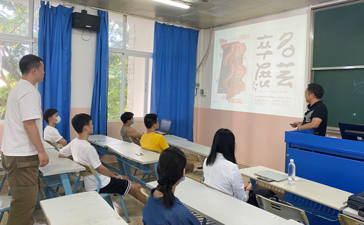讲座过程中,方超老师将大量收集整理的国内外艺术院校毕业设计站展海报,进行详细的分析解读,并同线上线下同学们进行了互动探讨,让大家及时了解当前的设计形式和动态。